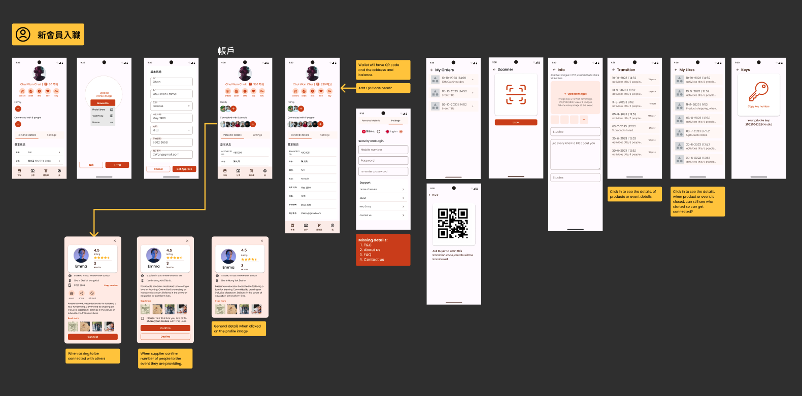 These workshops aligned stakeholders and transformed research into a structured UX strategy. The final design integrates a supplier-demand flow, a skill-exchange marketplace, and an admin dashboard, ensuring seamless engagement and collaboration across all three NGOs. With this foundation in place, I moved forward with wireframing, user testing, and crafting three distinct stylescapes to define the brand identity for this project.